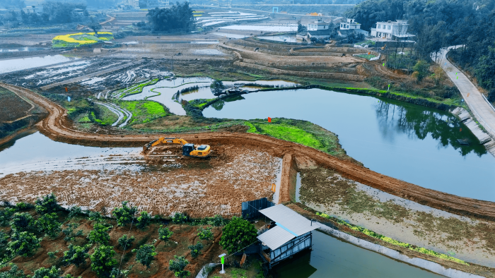 繼續(xù)向東,這里是萬里長江第一城——宜賓,在宜賓江安縣陽春鎮(zhèn),5000畝高標(biāo)準(zhǔn)農(nóng)田建設(shè)進(jìn)入尾聲,項(xiàng)目高峰期投入30余臺(tái)徐工挖掘機(jī)。