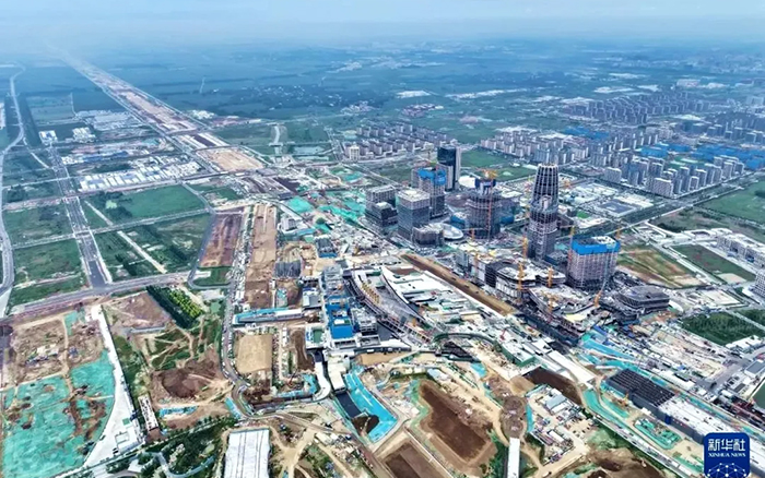 在雄安新區(qū)啟動(dòng)區(qū)金融島核心地帶,XGT7022等十余臺(tái)徐工塔吊如同鋼鐵巨人般矗立在建設(shè)現(xiàn)場(chǎng),與明珠湖對(duì)岸的國(guó)貿(mào)中心建筑群遙相呼應(yīng),它們正以毫米級(jí)精度吊裝著總重量超萬噸的鋼結(jié)構(gòu)模塊。