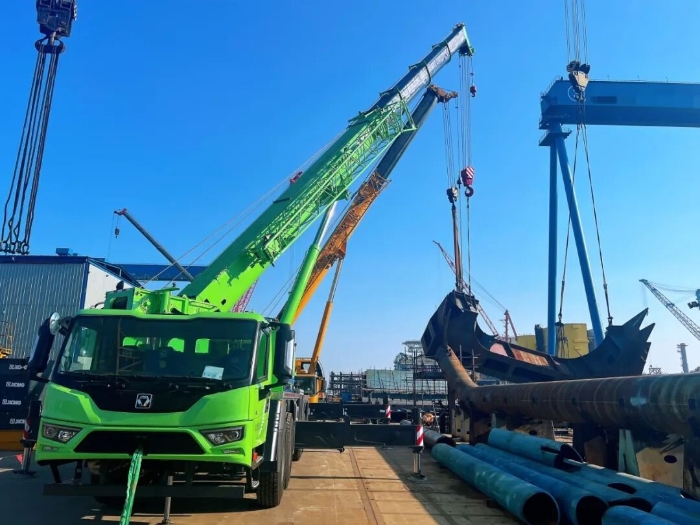 實力源于實戰(zhàn)。在華東某大型造船廠,徐工G2代XCT50G5-1HEV新能源起重機正展現(xiàn)其卓越性能。臂架輕盈伸展,將重達數(shù)噸的大型鋼結構平穩(wěn)起吊、穩(wěn)穩(wěn)嵌入預定位置,整個過程精準平穩(wěn)。