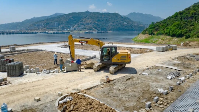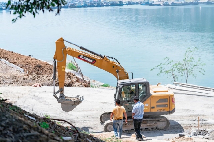 XE135G正在進行夔門旅游碼頭建設(shè),進行砂石挖裝、路基填筑、水泥轉(zhuǎn)運等作業(yè),性能穩(wěn)定,可謂是工地上的“多面手”。