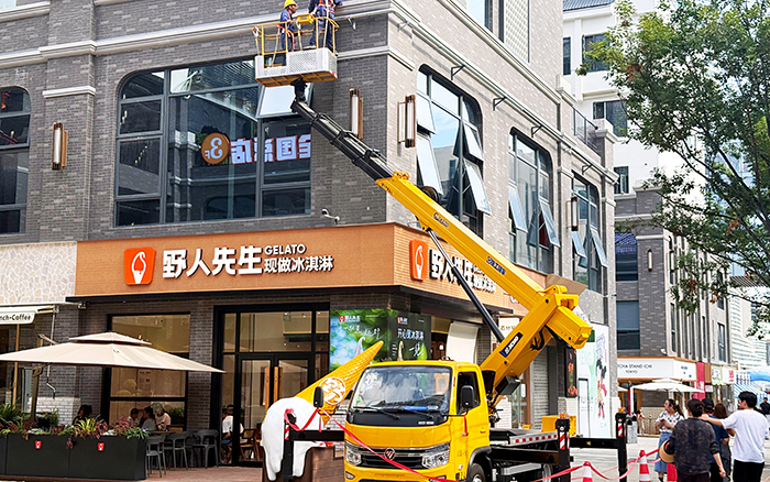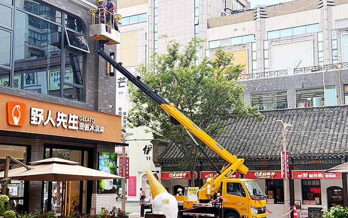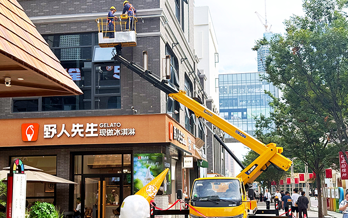 作為藍(lán)牌車型,GKS28 輕松穿梭于狹窄的街區(qū)巷道,無需復(fù)雜通行審批,到場(chǎng)后迅速進(jìn)入作業(yè)狀態(tài)。施工地周邊商鋪林立、行人如梭,施工區(qū)域被密集人流環(huán)繞,對(duì)設(shè)備的靈活性與安全性提出極高要求。