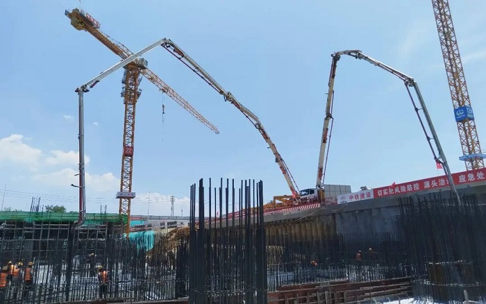 在南京北站核心區(qū)澆筑現場,徐工72米泵車以71.2米的布料高度精準覆蓋站房頂層作業(yè)面,連續(xù)48小時作業(yè)“零故障”的紀錄,完美應對穹頂弧形結構與站臺層復雜節(jié)點的澆筑需求。