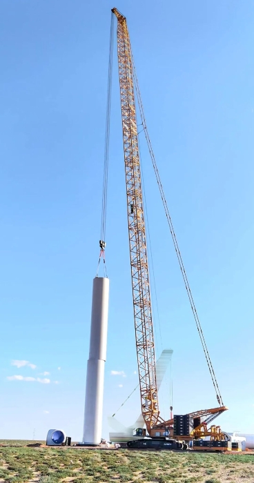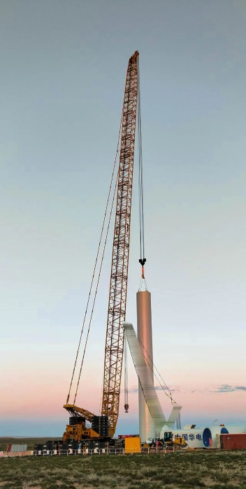 2025年5月,與河北采用195+5m超起工況完成首臺185m風(fēng)機(jī)吊裝;