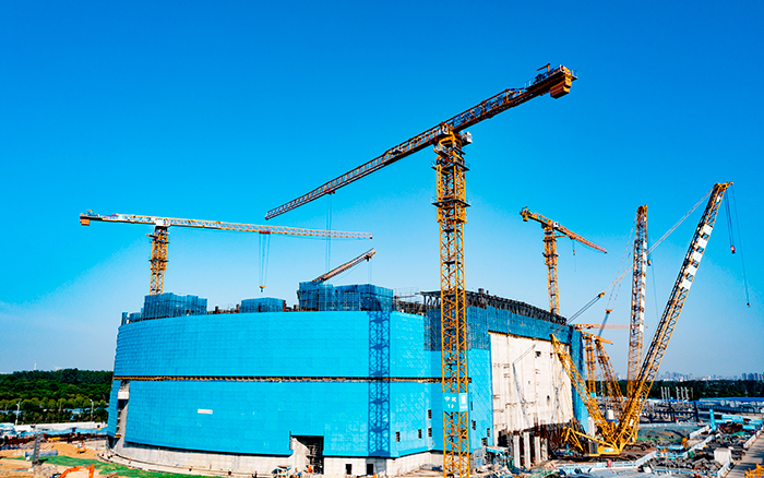 在合肥未來大科學(xué)城的核心區(qū)域,多臺徐工XGT800-40S、XGT600-25S正在系湊型聚變能實驗裝置園區(qū)(BEST)項目上火熱施工。