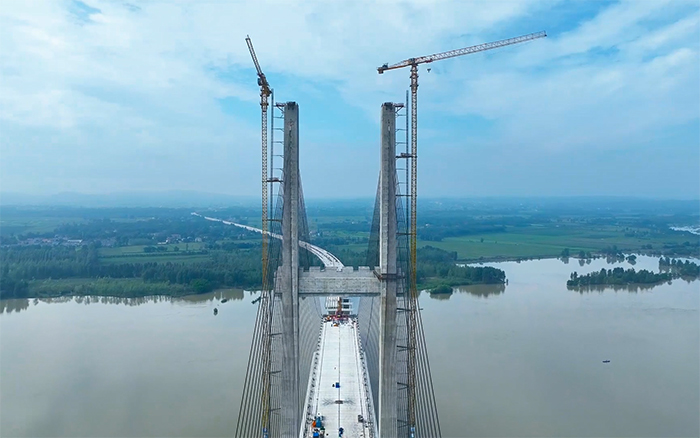 隆中大橋是207國(guó)道襄陽段改建項(xiàng)目的核心控制性工程,大橋全長(zhǎng)4454米,兩個(gè)主跨均為330米。