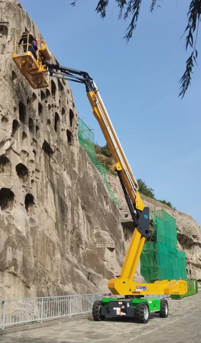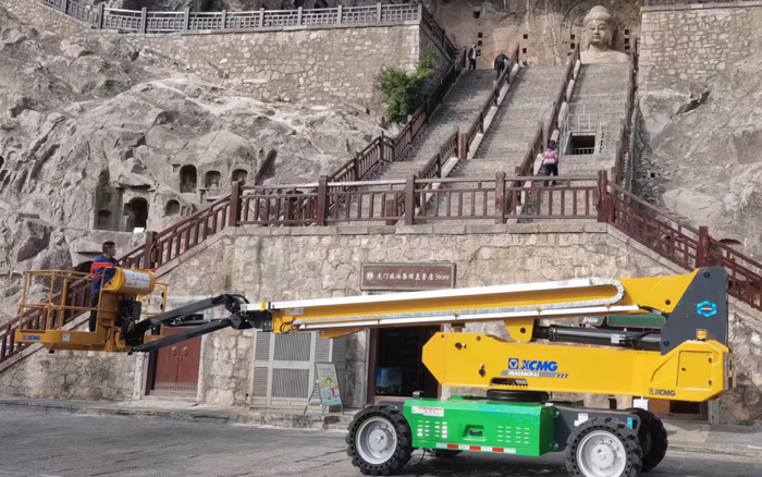河南洛陽龍門石窟文物保護(hù)工作中,徐工XGS25ACK-Li純電直臂高空作業(yè)平臺(tái)成為修復(fù)團(tuán)隊(duì)登高作業(yè)的堅(jiān)實(shí)支點(diǎn),以卓越操控性、極致平穩(wěn)性與零污染環(huán)保性托舉修復(fù)人員平穩(wěn)到達(dá)佛龕,助力危巖體加固、彩繪上色復(fù)原、清理歷史積塵等維護(hù)工作,助力古老窟龕煥新顏。