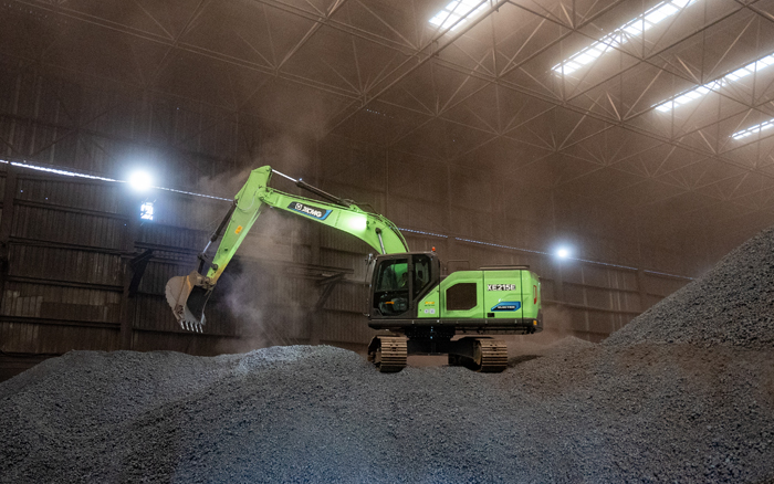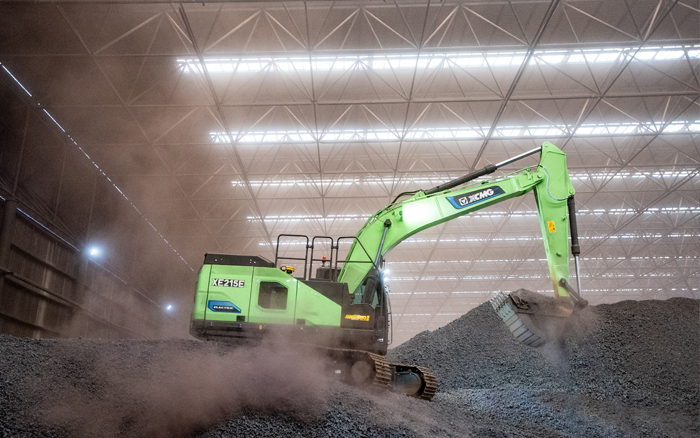 在封閉的廠房中,XE215EV純電動挖掘機正對鋼鐵原料礦石進行挖掘、搬運作業(yè),鋼鐵冶煉廠屬于重灰塵環(huán)境,而XE215EV卻練就了一身“超級本領(lǐng)”。